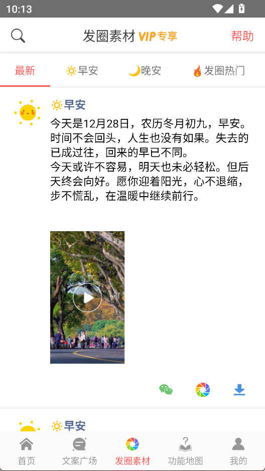 3、发圈素材界面能看到别人分享的内容