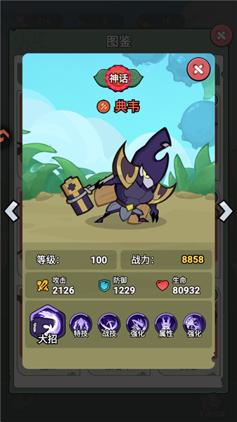 2、多维英雄成长:涵盖技能强化、星级突破、专属进阶等多重培养路径,深度塑造虫虫武将的专属战力,助力打造独一无二的个性化战斗流派。