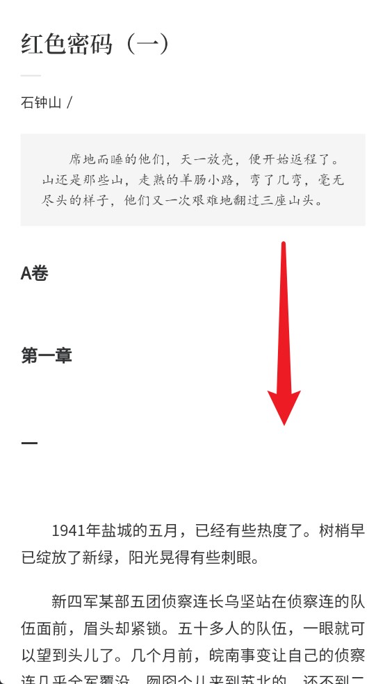2、首页展示最新连载内容,如《红色密码》,点击标题可阅读对应章节的小说内容。