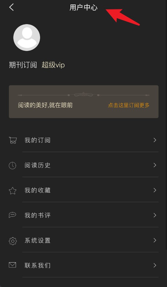5、点击右上角进入用户中心,可查看订阅状态、阅读记录、收藏书籍及系统设置等功能。