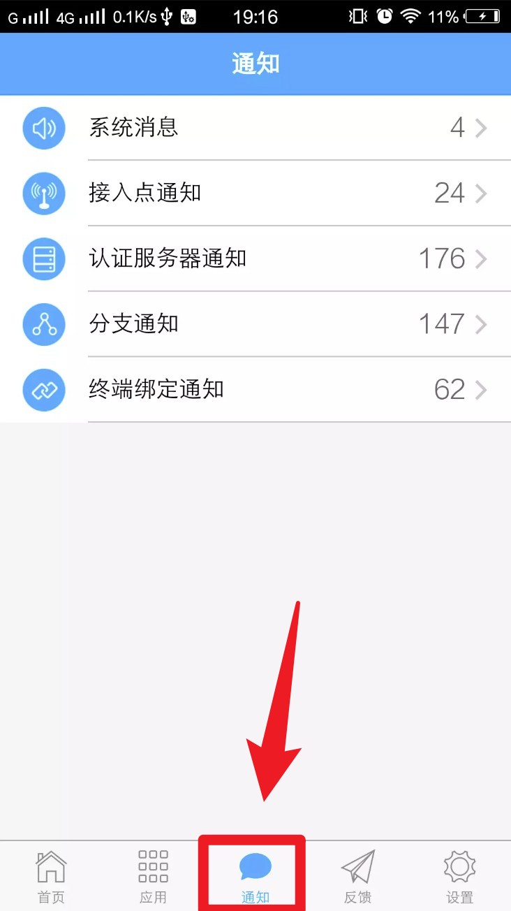 3. 点选底部通知标签页,可查看系统信息、接入点通知、认证服务器异常等推送提醒。
