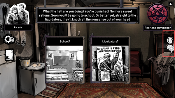 6、注意屏幕右侧的“心脏”和“大脑”,部分的选择会消减或增加两者。