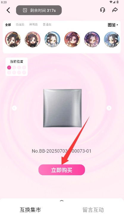 4、进入盲盒详细信息界面后,查看盲盒图案选择盲盒后点击立即购买完成下单。