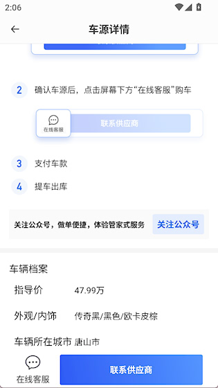 1、车源支持:提供大量经过认证的真实车源,覆盖多种品牌与车型,便于快速匹配所需车辆,减少寻找时间。