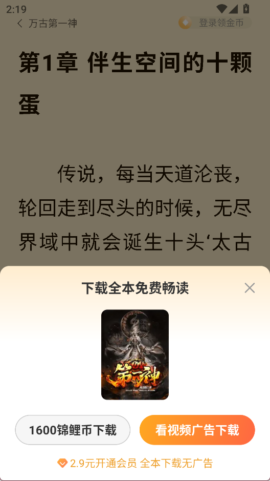 1、在阅读界面点击上方下载全本