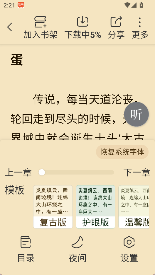 5、多样阅读模板:提供官方与自定义两种阅读样式选择,用户可根据个人喜好调整排版、背景等细节。
