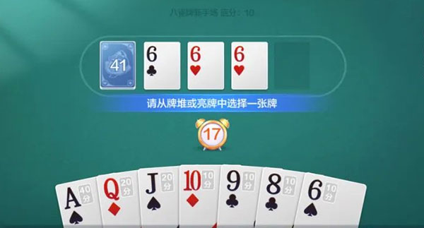 此时应该摸一张暗牌,打掉手里的8,只要再等一张A或Q,就能开始听牌~