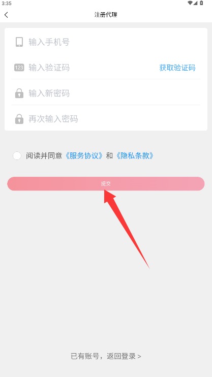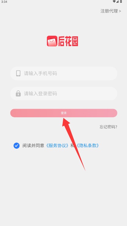 4、返回登录界面输入已注册的手机号和密码,勾选同意相关协议后点击登录即可。