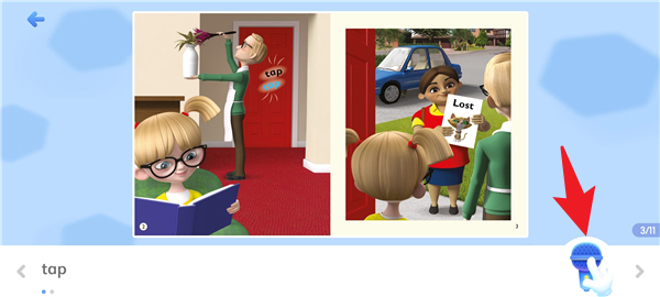 4、进入绘本阅读时,可点击页面上的互动按钮进行单词学习与语音练习,让孩子边读边学更高效。
