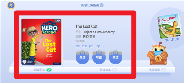 5、完成阅读任务后,会自动评分一至三颗星,解锁进入下一本学习绘本。