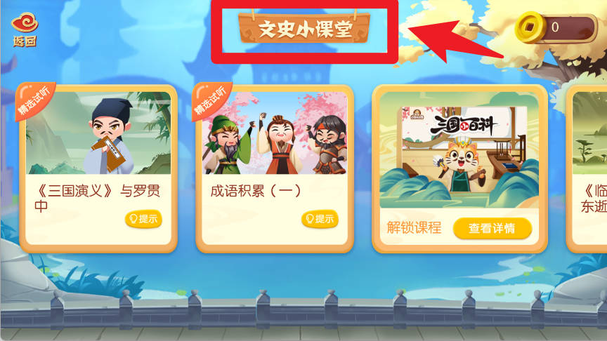 5、在文史小课堂模块,用户可以解锁更多历史课程,结合成语积累和经典故事,逐步拓展历史知识。