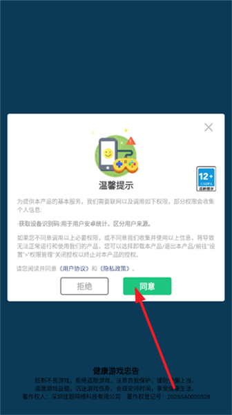 1、首先打开游戏,阅读并同意《用户协议》和《隐私政策》;