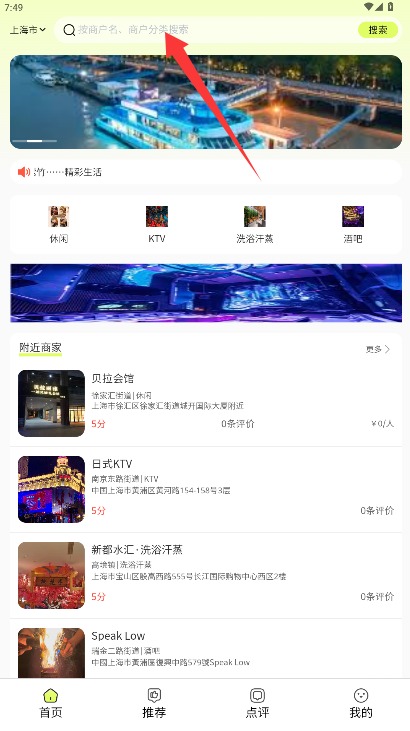 3、在首页点击搜索栏输入商家名称或分类关键词,快速查找目标商户信息。