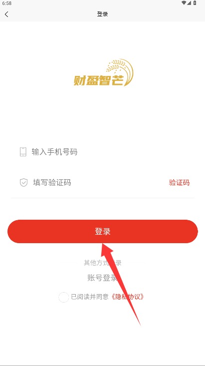 2、在登录页面输入手机号码和验证码,勾选同意相关条款后点击登录进入应用。