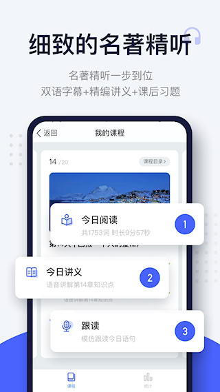 3、专属精听模块:名著原声逐句朗读,高亮双语字幕同步呈现,配套干货知识点讲义与课后习题,彻底解决名著难懂的痛点。