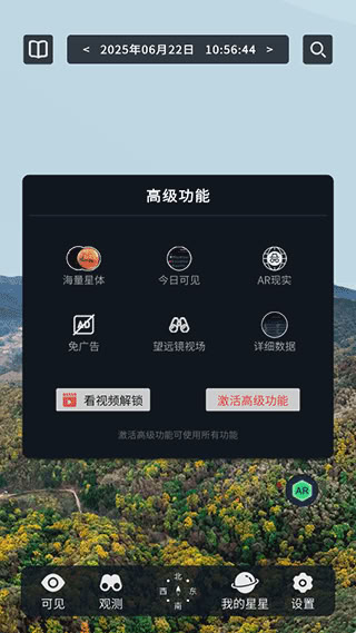 2、观看指定推广视频,即可免费解锁APP全部功能,畅享完整观星体验;