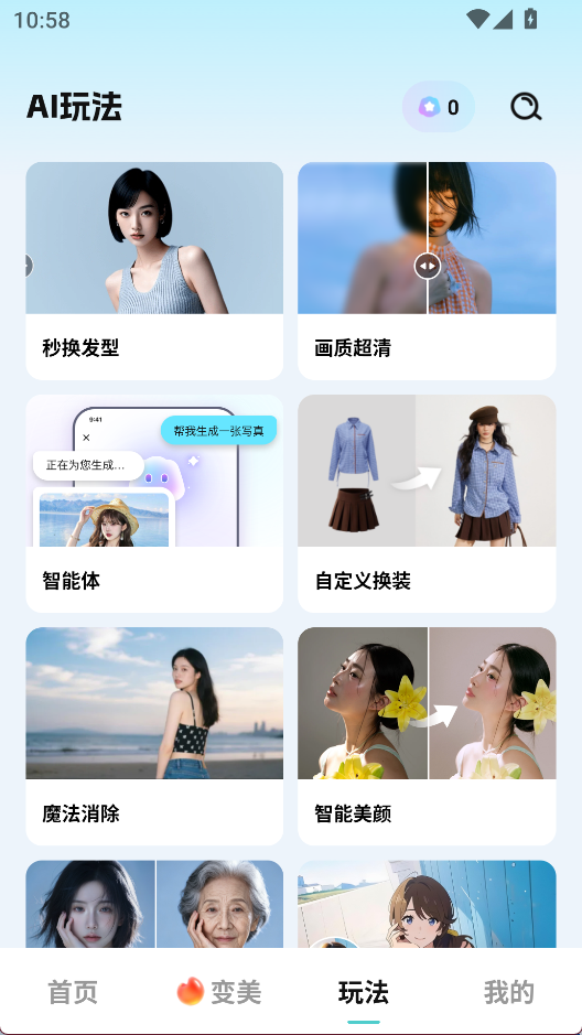 2、发型智能更换:自动识别面部轮廓,匹配适合的脸型与发型,支持多种发色与款式选择,帮助用户快速尝试新造型,找到最适合自己的形象。