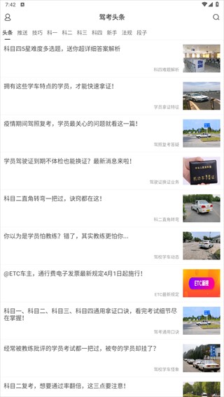 5、聚合优质驾考资讯,覆盖多车型科目一至科目四全科目相关内容报道