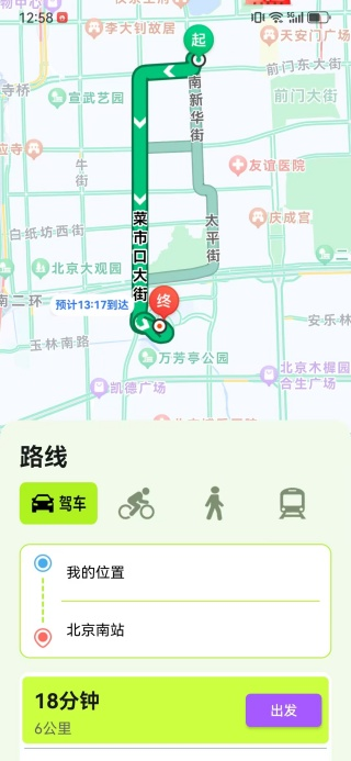 2、智能路线规划,覆盖驾车、步行等多种出行方式,灵活适配不同场景