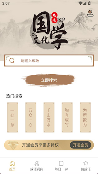 1、“首页”提供了精确搜索成语的功能