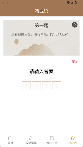 4、“猜成语”界面可以根据题目猜成语