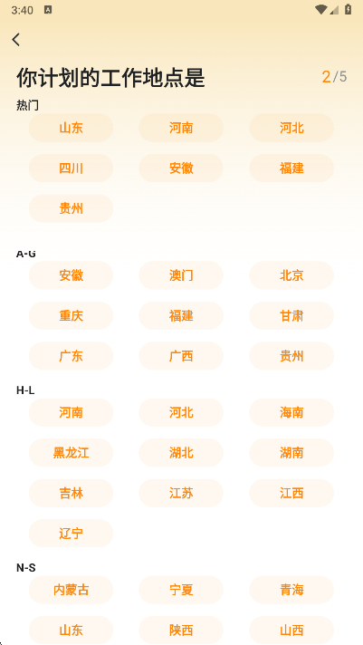 3、选择工作地点,平台将依据地点推荐适配的课程与题目资源;