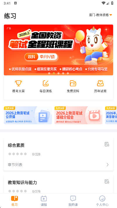5、选择具体学科后,进入对应课程与题库板块,开启高效学习;
