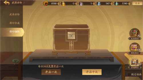 5、三国杀一将成名游戏中每日均有免费将印抽取,活动也会赠送众多将印。