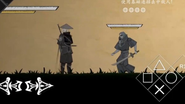 2、滑动屏幕操控皮影角色,在横向卷轴场景中向前进行移动,通过点击右边的按钮施展攻击技能。