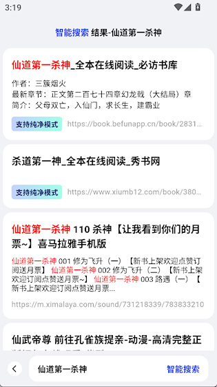 2、搜索结果有多个网站来源,选择一个开始阅读