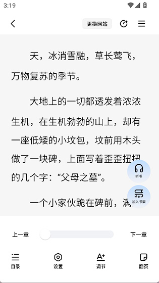 3、阅读界面提供更换网站、听书等功能