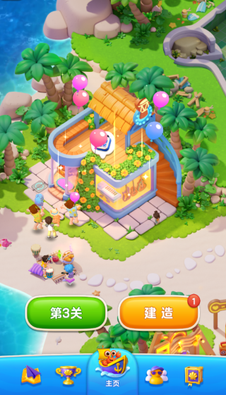 4、成功的通关获取大量的钞票,开始修缮,不断的完善你的岛屿,吸引大量的顾客。