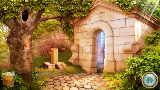 10、把魔法球放到青蛙旁边的建筑里,打开魔法门。进入之后,记录花坛上的提示。然后左转,看到萤火虫,但捉不到。右转来到图书馆。拿到船桨。并在图书馆右侧,船的旁边找到一个符轮。