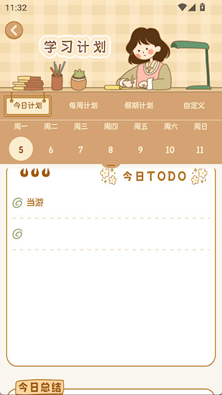 2、点击底部学习计划可以建立每周、每日或自定义计划