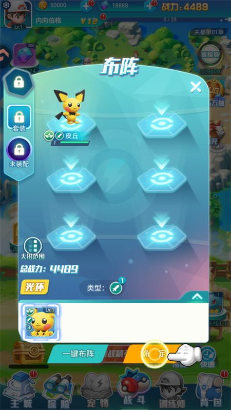 4、在对战准备界面中,执行一键布阵操作,快速完成精灵出战配置。
