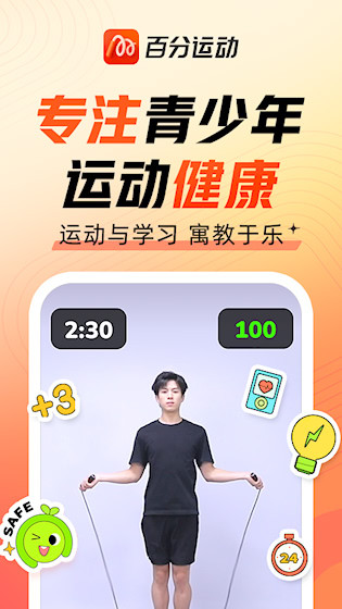 百分运动是一款运动健身应用,利用动作识别技术,无需额外设备即可完成跳绳计数、体能测试等锻炼项目,在手机前进行动作,自动捕捉并记录运动数据,提供动作反馈与调整建议,融合了趣味互动玩法,让锻炼过程更具吸引力。