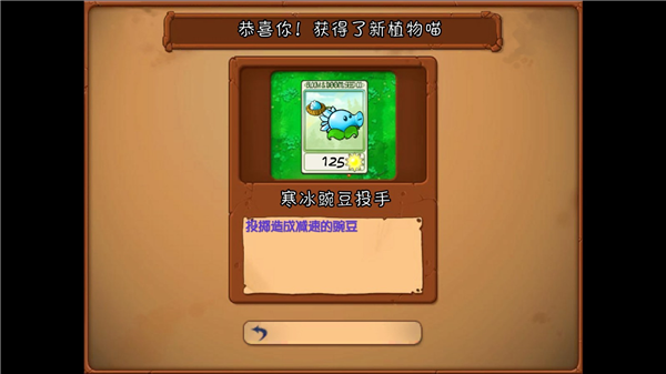 4、例如这里我们就获得了寒冰豌豆投手,不会像正常的冒险模式一样获得植物。