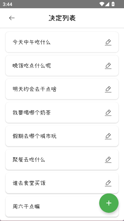 小决定转盘喵是一款专为解决日常选择困难而设计的趣味工具,当你面对多个选项犹豫不决时,只需将这些选项输入到应用中,通过转动自定义转盘、抛硬币、掷骰子等方式,快速获得一个随机结果,适合在生活、学习或聚会中使用,帮助人们轻松摆脱纠结状态。