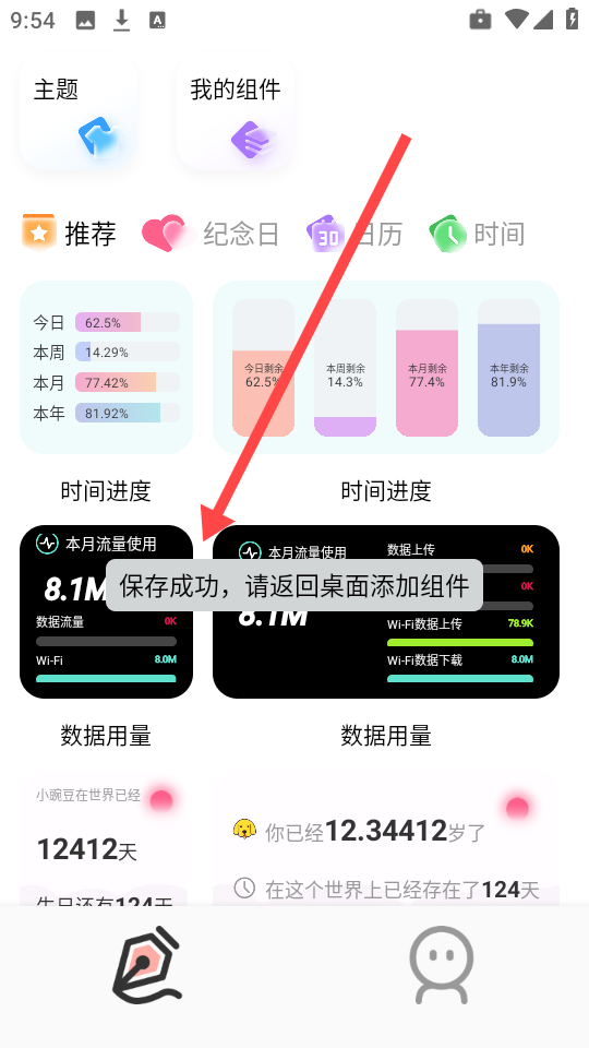 4、稍作等待,界面将弹出“保存成功”提示,此时小组件设置全部完成。