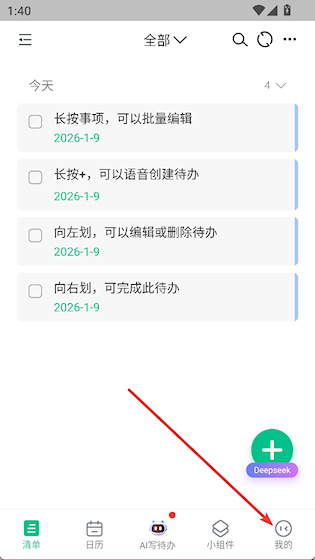 通过长按添加按钮即可使用语音快速记录任务,提升输入效率。