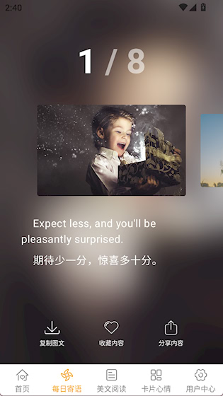 2、在每日寄语界面,每天推送8个寄语