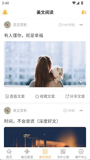 3、美文阅读界面提供内容更长的短文