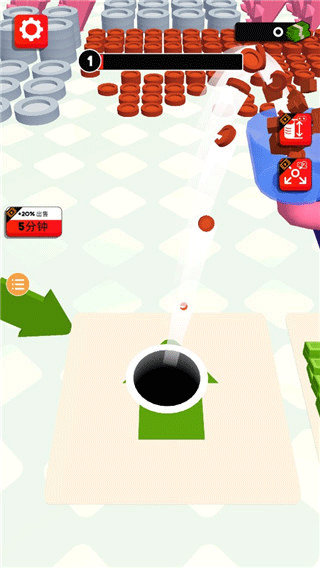 3、将吞满了的黑洞移动到绿色箭头处即可将物品转化成钞票。