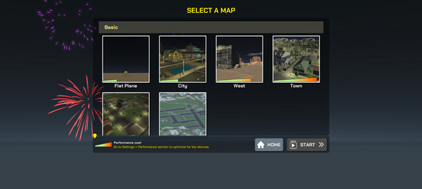 1、打开大型烟花模拟器最新版,首先选择游戏模式,现有FPS模式和构建模式等;