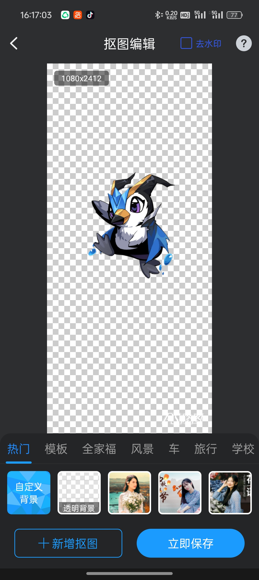 1、智能抠图高效:自动识别画面主体,一键去除原有背景,自由替换任意场景。