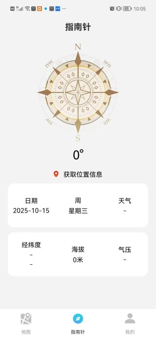 4、进入指南针页面,可精准获取当前位置信息,清晰掌握具体方位,适配户外辨向需求。