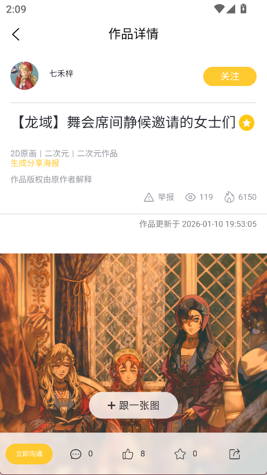 2、进入作品详情界面点击图片查看大图