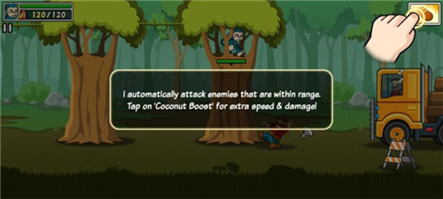 2、点击屏幕操控猴子在大树间移动,拾取香蕉作为出兵资源。