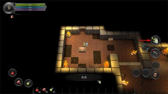 4、当和物品互动时点击右侧的手掌按钮,开启机关也是使用这个按钮。