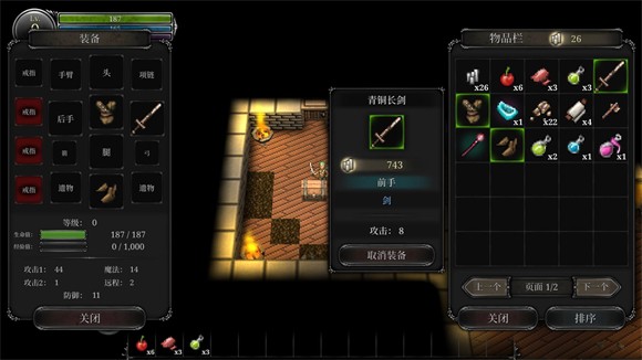 6、在地图里和怪物战斗会获得各种道具和经验,提升等级会增强自己的属性。